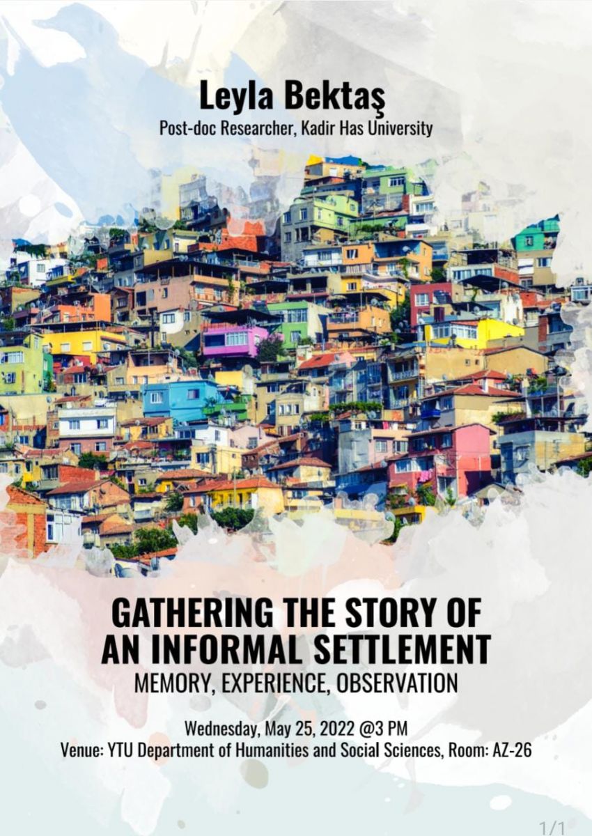 Bölüm seminerlerimiz kapsamında Leyla Bektaş'ın sunacağı “Gathering the Story of an Informal Settlement: Memory, Experience, Observation" başlıklı konuşmaya davetlisiniz.