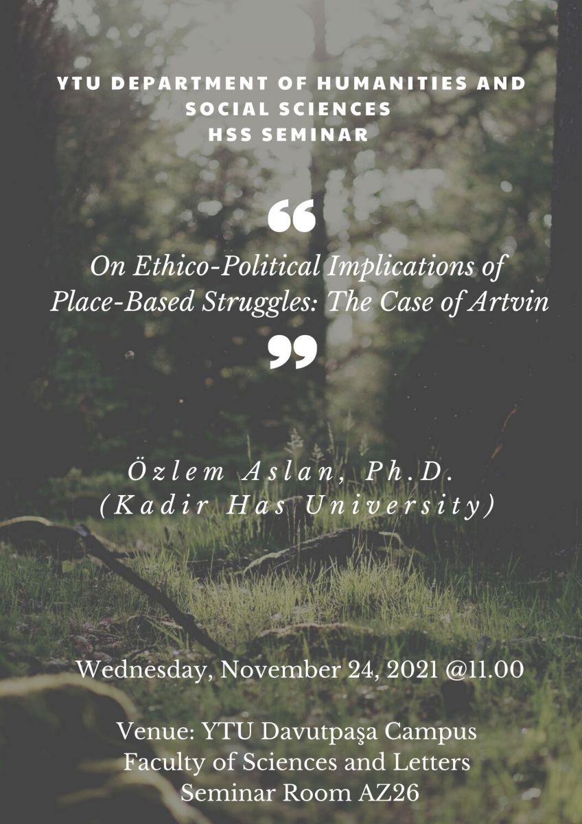 Bölüm seminerlerimiz kapsamında Dr. Özlem Aslan’ın sunacağı “On Ethico-Political Implications of Place-Based Struggles: The Case of Artvin” başlıklı konuşmaya davetlisiniz.